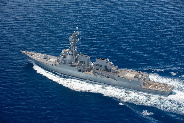 The guided missile destroyer USS Stockdale conducts an archipelagic sea lane passage through the San... Photo Details >
