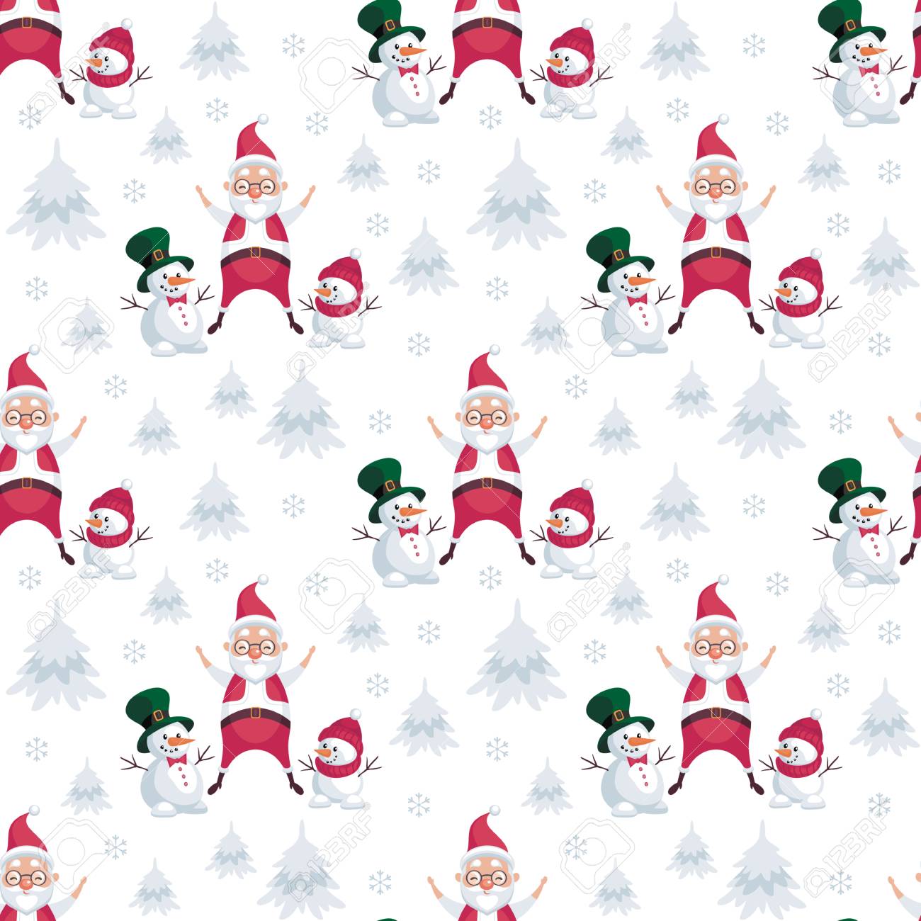 Navidad Sin Patrón Con La Imagen De Santa Claus Y Muñecos De Nieve En Estilo De Dibujos Animados . Fondo De Vector Colorido Ilustraciones Vectoriales, Clip Art Vectorizado Libre De Derechos. Image 87889688.