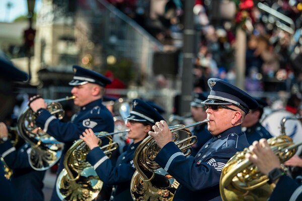 Members of the Air Force's Total Force Band perform during the Tournament of Roses Parade in Pasaden... Photo Details >