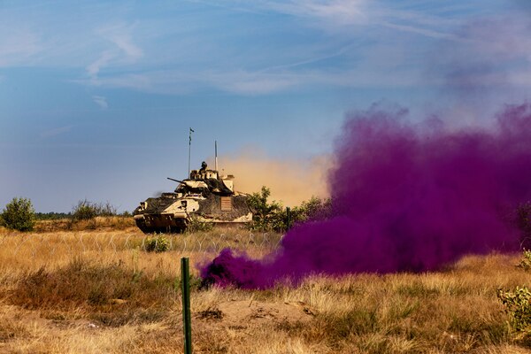An Army M2A3 Bradley Fighting Vehicle assigned to "Chaos" Company, 1st Battalion, 68th Armor Regimen... Photo Details >