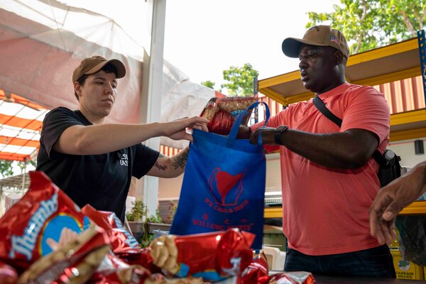 Navy Petty Officer 3rd Class Shenell Carter, left, and Navy Petty Officer 2nd Class Assomou Yamkey p... Photo Details >