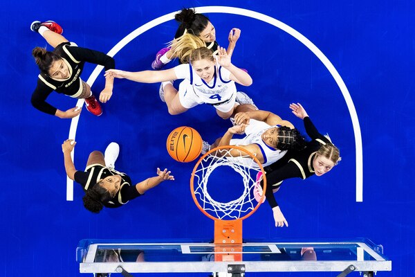 U.S. Air Force Academy's Madison Smith attempts a shot during a game against University of Colorado ... Photo Details >
