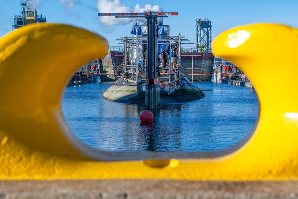The USS Washington enters a dry dock at Portsmouth Naval Shipyard in Kittery, Maine, for a scheduled... Photo Details >