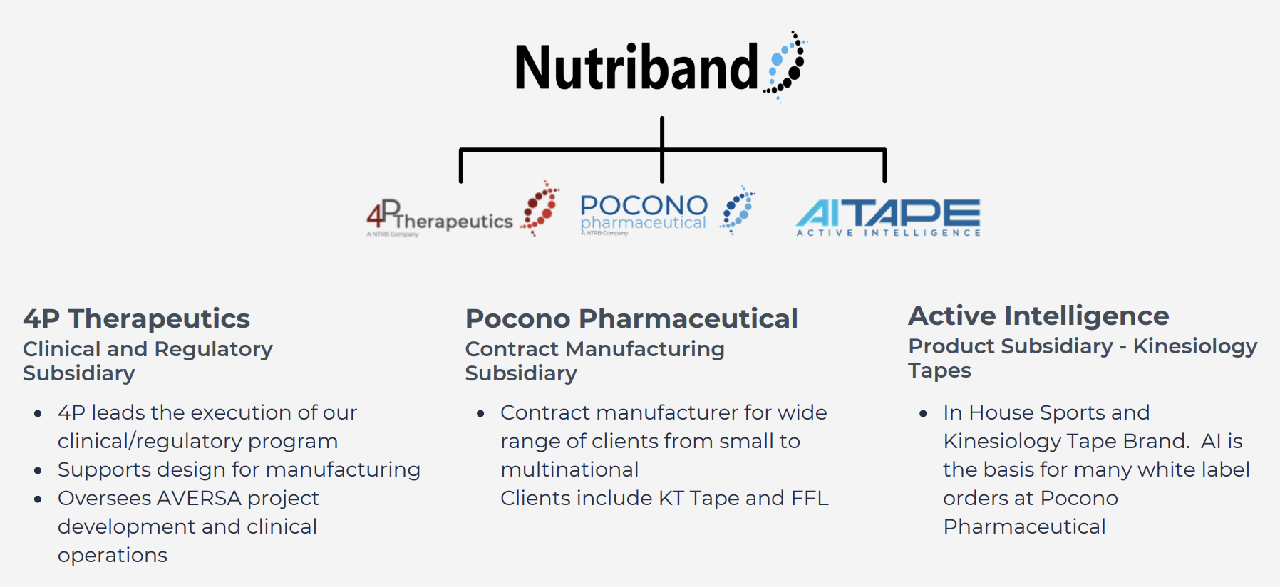 We Are Initiating Coverage With An Outperform Rating. Nutriband, Inc. is a pharmaceutical company developing transdermal patch technologies for drug delivery. Its proprietary technology, known as AVERSA, has abuse-deterrent features with important differences from other transdermal patches on the market. The lead product is AVERSA Fent-a-nyl, an abusedeterrent transdermal patch for delivering fent-a-nyl that improves safety, compliance, and patient comfort.