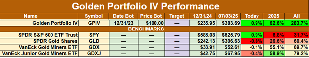 And while I think everyone should own some physical metal… the real money is to be made in the stocks. That’s the whole focus of my Golden Portfolio IV (GPIV) service: putting you into gold stocks that don’t just keep pace with gold… but give you gains that outperform.