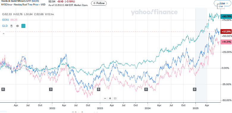 “Companies involved in the gold mining industry” is a low bar. It includes companies that are unprofitable, shareholder unfriendly, economically doomed at any gold price or otherwise actively being mismanaged for the personal gain of company insiders. Van Eck doesn’t care about trying to find gold stocks that outpace gold… because they just collect their 0.51% in fees. That’s easy work.