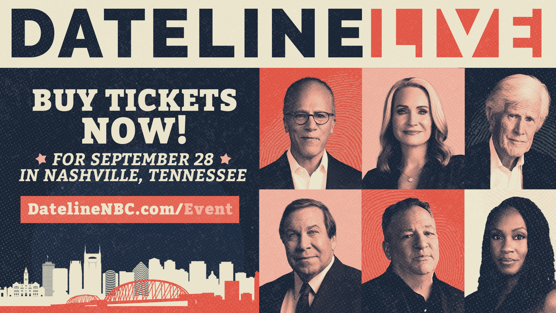 The Dateline team is hitting the road for a first-of-its-kind event! See you in Nashville on September 28 at The Pinnacle. Tickets are on sale now! |