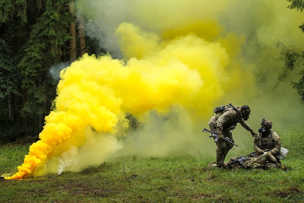 The headquarters element of the 1st Cavalry Squadron, 2nd Cavalry Regiment, reacts to a simulated ch... Photo Details >