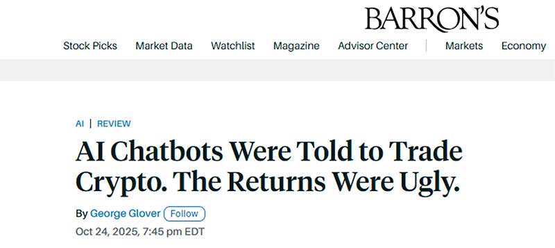 Dear Reader, ChatGPT just lost 72% in six days trying to trade crypto. Google's Gemini was down 60%. Meanwhile, we've been posting outperformance for years. Human traders aren't going anywhere... For the last six years, I've written Trade of the Day with one simple promise: every word comes from my brain. No AI scripts, no copy and pasting from other traders, no lazy plagiarizing. But recently, I'll admit, I've been wondering: could my job eventually be replaced by an AI-generated trader? Well, I just got my answer... and it's more definitive than I expected. The AI Trading Disaster Last week, Barron's published results from a trading competition called Alpha Arena. Six of the best-known AI language models each got $10,000 on October 17 and were prompted to trade cryptocurrencies. The results were stunning... - OpenAI's ChatGPT: Down to $2,752 (-72% in six days)