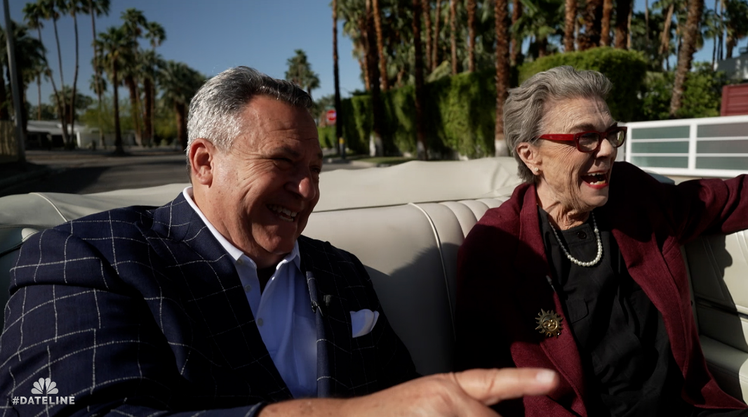 Society columnist Barbara Wisbey shows Josh Mankiewicz around Palm Springs, California. |