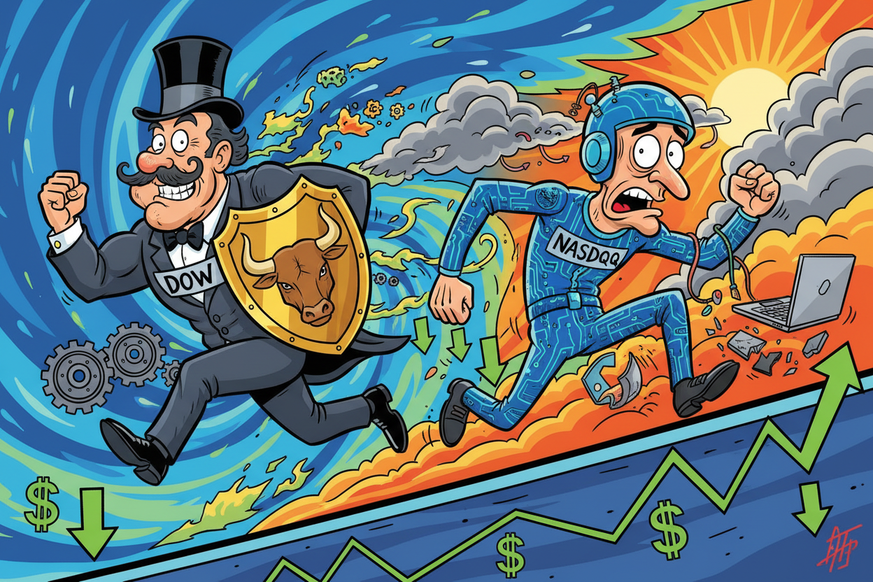 The shift from growth to blue chips shows up beneath the S&P 500 headline.