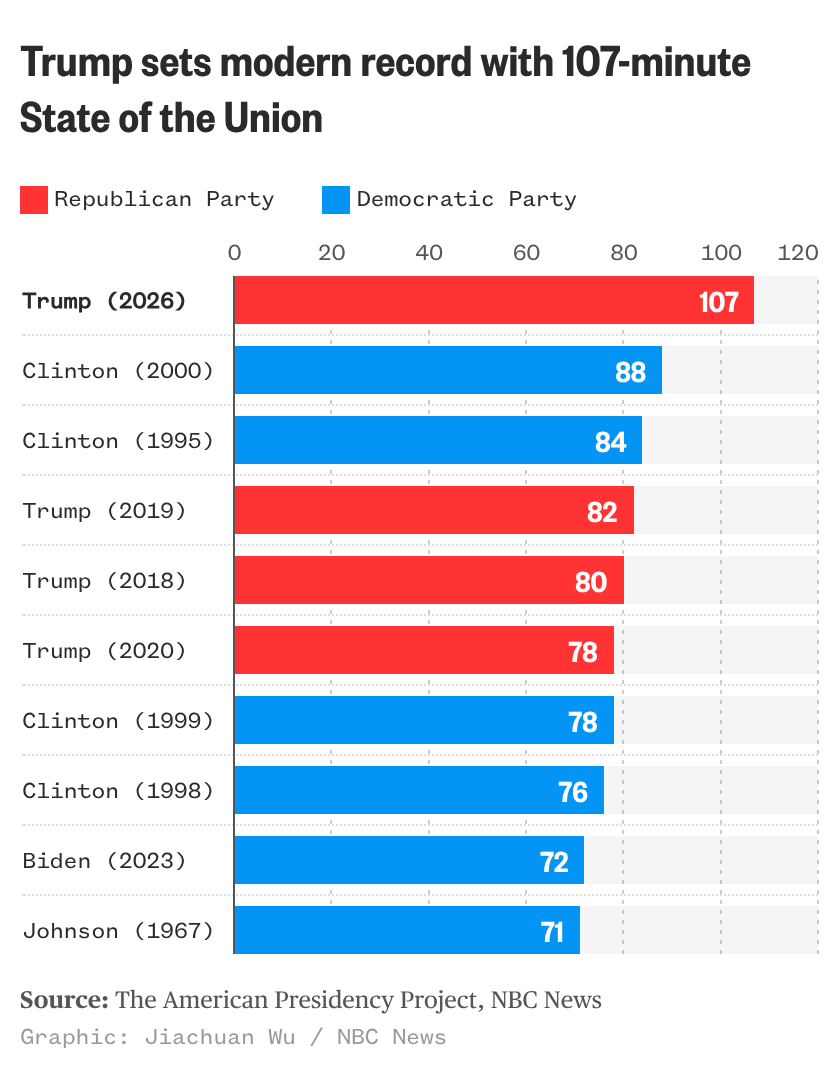 Trump didn't mention Alex Pretti and Renee Good, the American citizens killed by federal agents in Minneapolis. But Rep. Norma Torres, D-Calif., held a sign showing photos of them. Reps. Ilhan Omar, D-Minn., and Rashida Tlaib, D-Mich., repeatedly shouted at Trump: "You have killed Americans."