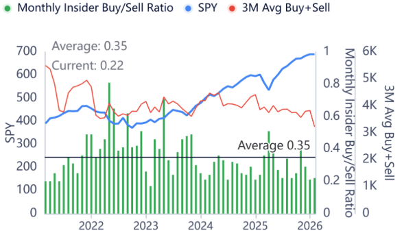 | This is a "reset" of over-levered positions and valuations, not necessarily a recession signal—yet. | Insider Signals: What the Smart Money Is Doing Right Now | Since the focus here is on following insiders who have the deepest knowledge of their companies' fundamentals let's zoom in on their recent activity during this sell-off. Insiders (executives, directors, and major shareholders) file trades publicly via SEC Form 4s, and their moves often cut through market noise. | Overall Market Insider Sentiment (Early February 2026): The broad insider buy/sell ratio is around 0.21 (more selling than buying), below the 5-year average of ~0.35 and near levels seen at past peaks. | | | This reflects caution: heavy selling in tech/AI (e.g., Intel EVP sold 20,000 shares at $49.05 for $981,000, trimming stake 15%; Fortinet CEO offloaded 175,737 shares at $81.42 for $14.3M; Micron EVP sold 25,000 at $429.89 for $10.7M; Western Digital CEO sold 20,000 at $255.44 for $5.1M).