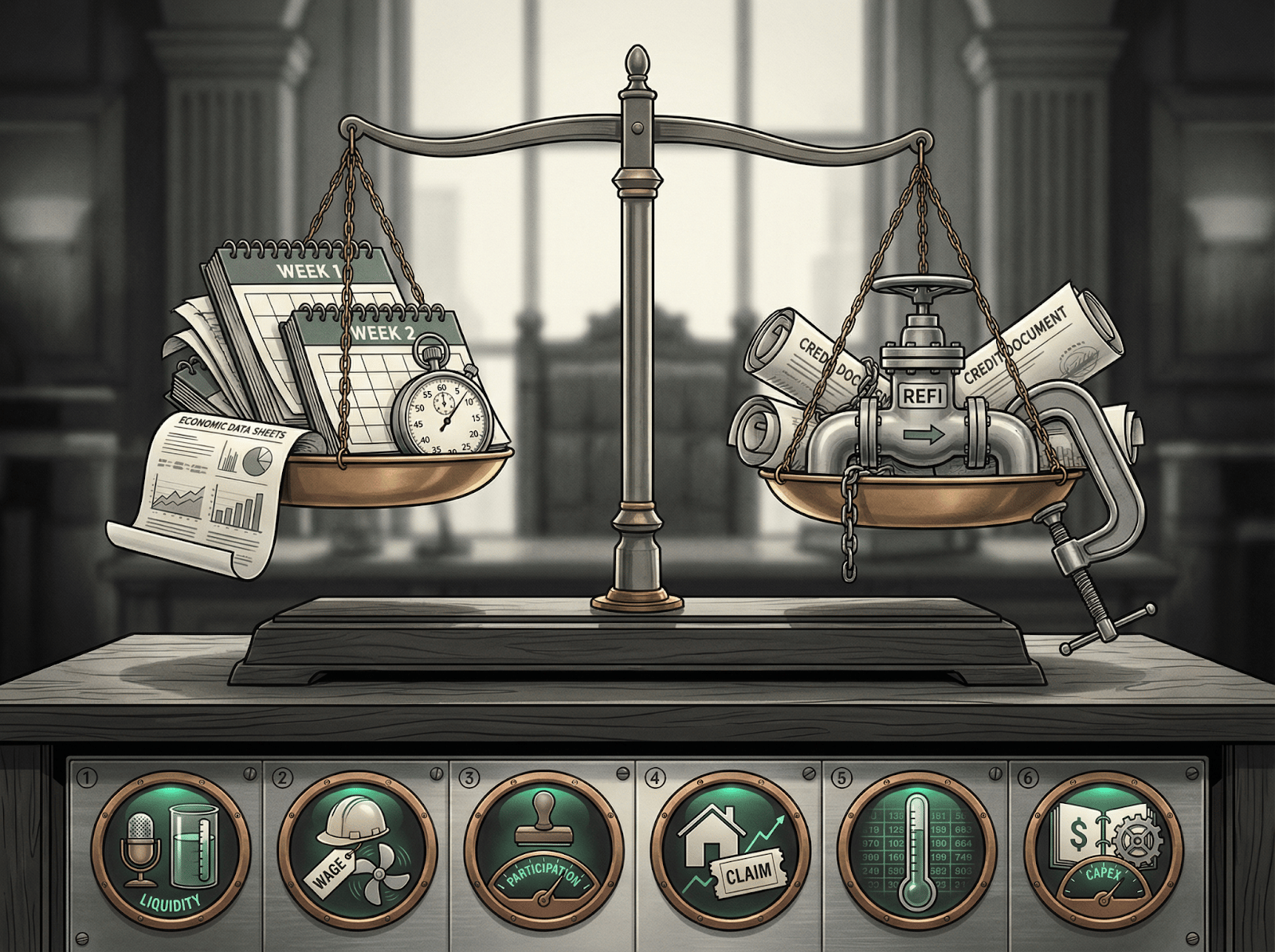 | | | | | PRESSURE POINT 4 Thursday checks credit stress before earnings do | Initial Jobless Claims and Existing Home Sales arrive Thursday. | Claims are not a recession signal. They are a lender behavior signal. | A steady drift higher tightens underwriting quietly even when earnings remain intact. | Housing data will be read through the same clearance lens. Transactions matter more than prices. Liquidity matters more than affordability narratives. | Residential and commercial real estate financing continues to sort by balance sheet strength rather than asset quality alone. | PMD Investor Signal Rising claims pull leverage capacity down before marks adjust. Expect tighter borrowing base treatment and slower refinancing timelines in employment sensitive sectors. |