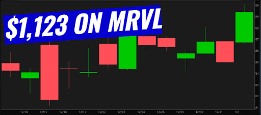 And days later, MRVL ranked at the top. Another quick trade returned $1,123 in 16 days. |
