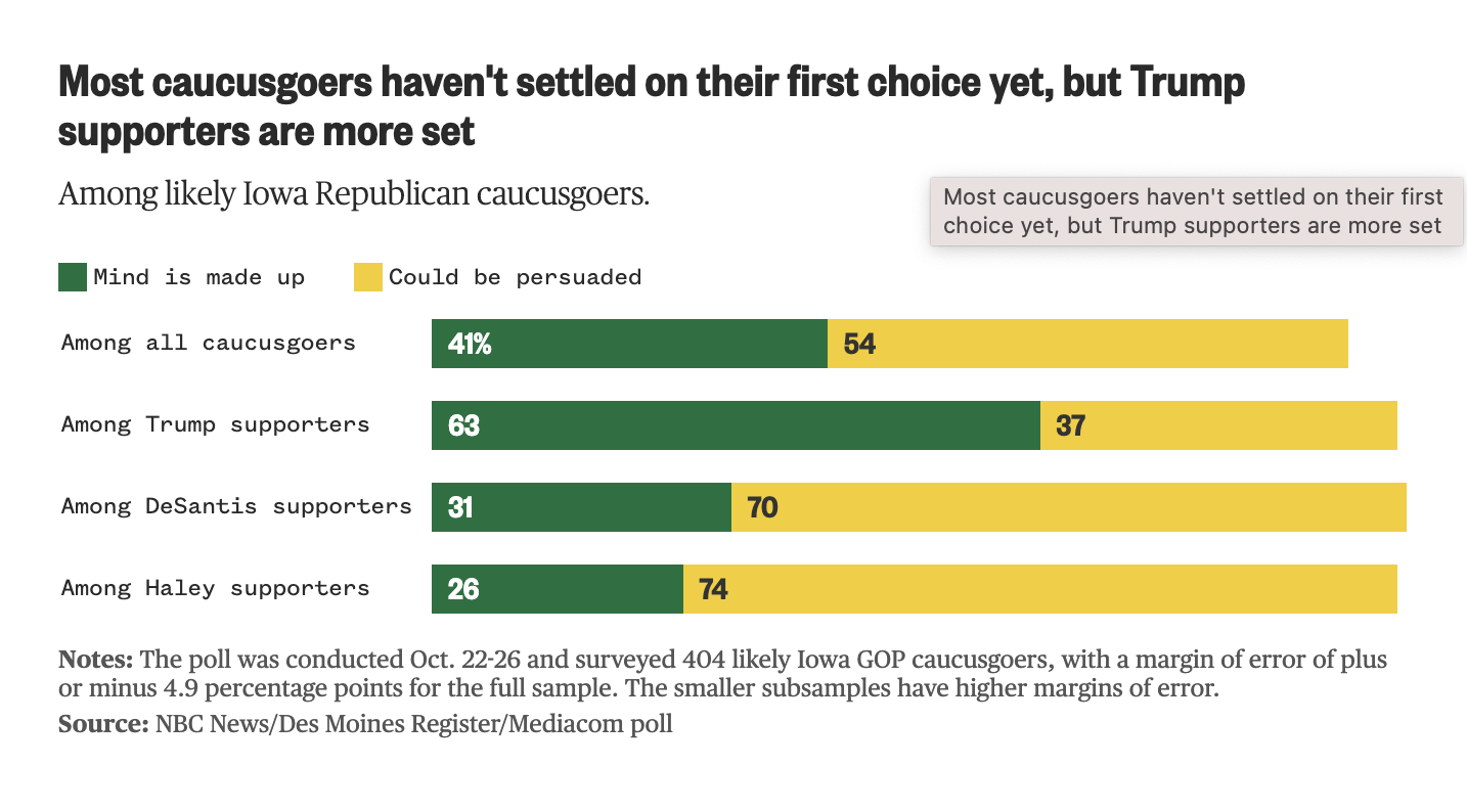 Taking on DeSantis: The pro-Trump super PAC MAGA, Inc., launched a new TV ad in Iowa knocking Florida Gov. Ron DeSantis for his past support of statehood for Puerto Rico. The New York Times notes this is a shift in strategy for the group, which had been focused on contrasting Trump and Biden.
