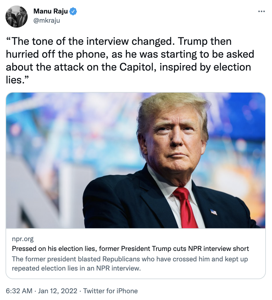 From NBC's Chuck Todd, Mark Murray, Ben Kamisar, Bridget Bowman and Alexandra Marquez FIRST READ: Process debates are turning Democrats against each another If it's Wednesday… White House promises to provide schools 10 million Covid tests per month… Democrat Cherfilus-McCormick cruises to victory in FL-20… Club for Growth ties GOP opponents to Trump impeachers Liz Cheney and Anthony Gonzalez… GOP Senate candidate says "Let's go, Brandon" in TV ad… And Trump cuts NPR interview short.