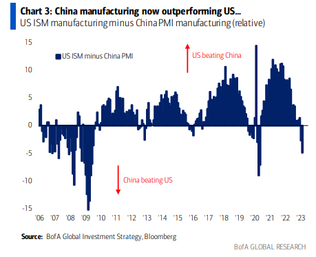 US ISM manufacturing minus China PMI manufacturing (relative)