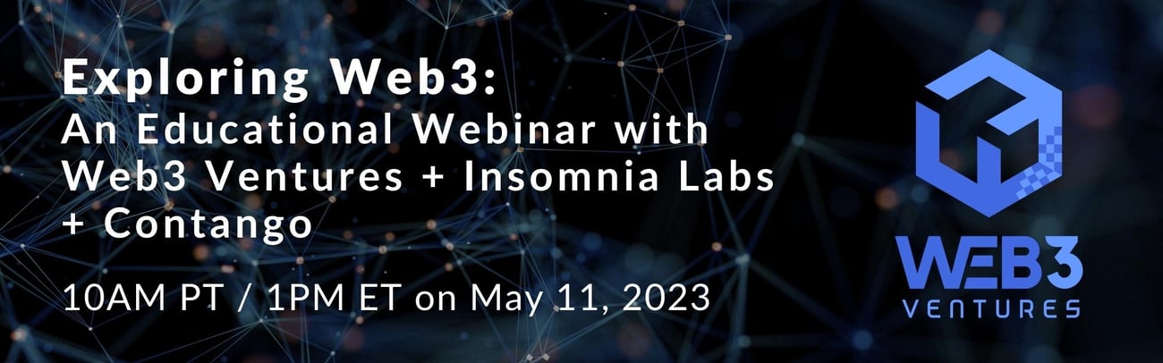 WEBINAR DETAILS Topic: Exploring Web3: An Educational Webinar with Web3 Ventures + Insomnia Labs + Contango Date: May 11, 2023 Time: 10AM PT / 1PM ET