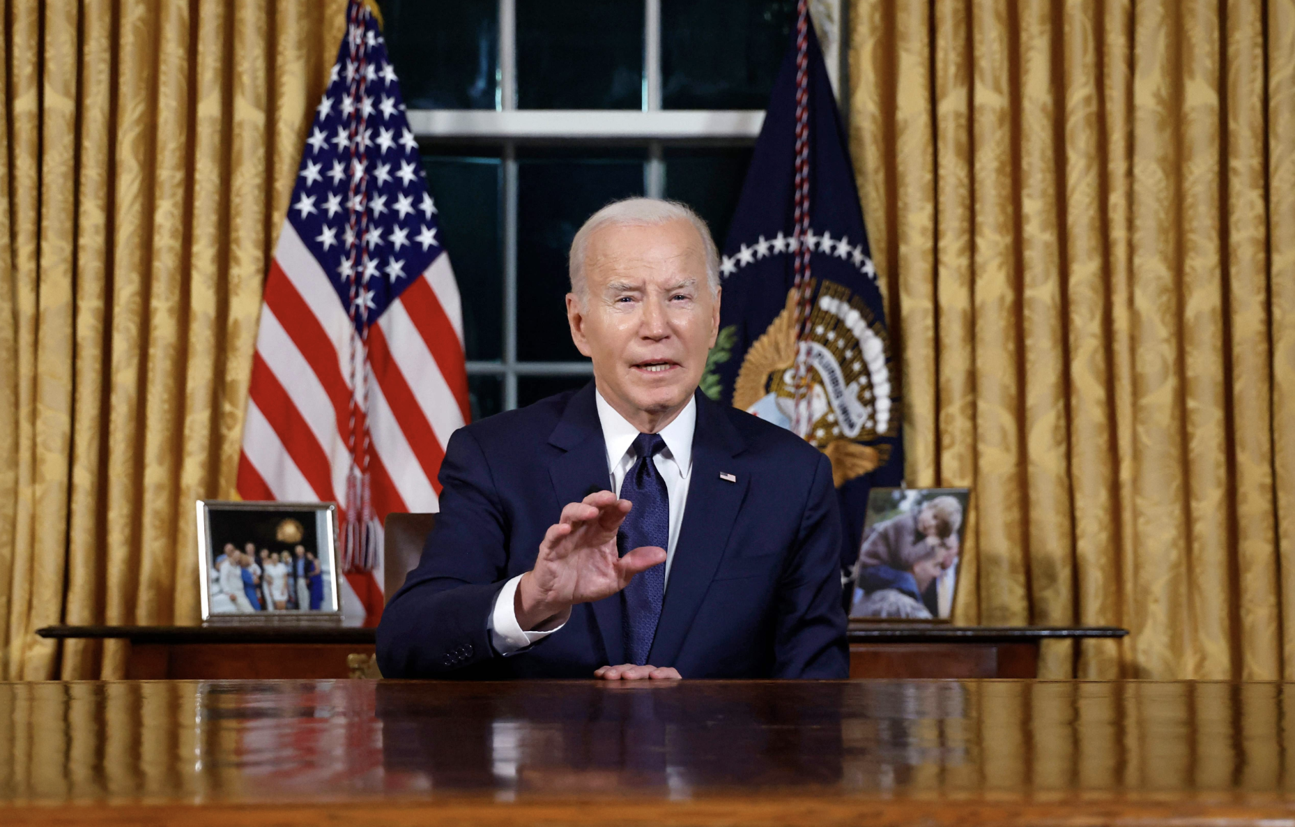 Trump campaign's statement prior to speech: "When Biden gives his Oval Office address tonight, he is desperately hoping Americans will forget that it's Biden himself who is responsible for these disasters. As America stumbles ever closer to World War III, Joe Biden is Neville Chamberlain trying to pose as Winston Churchill. He is an arsonist promising to rescue us from the world he set on fire."