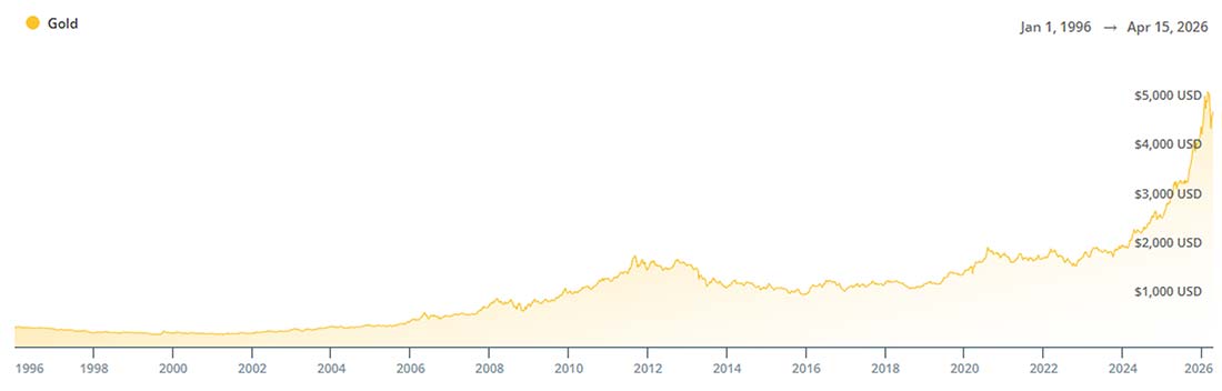 When the conflict escalated and the Strait of Hormuz closed, gold did not spike higher. It sold off from $5,200 in early March to $4,400 by late March. Inflation fears and rate uncertainty hit harder than the safe-haven bid.